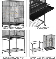 - 【Convenient maneuverability】 The parrot cage comes with a stand that sits on four 360° swivel smooth-rolling casters for easy maneuverability. The detachable mobile stand can be easily removed if needed. Besides, you can even attach the casters to the bottom of the cage directly to make the cage mobile without a stand.