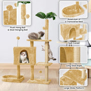 Whether your cat is an avid toy chaser or professional napper, she'll be able to do it all in one spotโher very own tree. Mudie 52'' Cat Tree with 4 Top of Plush Perch & 1 Luxury roomy Houses for Relaxing & Multiple Sisal Scratch Posts & Funny. Dangling Balls, it can fully meet your cats' needs for playing, sleeping, and exercising. The cat tree is made of grade P2 particleboard and covered with skin-friendly plush, which is comfortable and warm for your little king or queen to rest on. Strengthened with battens at the bottom to ensure overall stability. With super solid construction, a well-balanced design, cats can easily and safely leap on or off this cat tree. Available in various colors to dรฉcor your home while satisfying your cat to play.