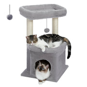 Cozy Gray Cat Tree Condo - 27" Multi-Level Tower with Spacious Perch and Scratching Posts for Kittens and Medium Cats