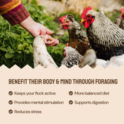 Perfect for flock-wide feeding, that stimulates your ladies and encourages natural foraging behavior all while replacing the daily bag shuffle. Think of it as granola, but for chickens.