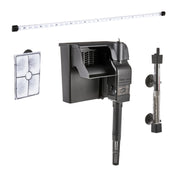 - Includes glass aquarium with a plastic hood, LED hood lighting, 3-stage filtration system (175GPH), and an aquarium heater