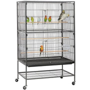 Metal 52-Inch Large Rolling Bird Cage with 3 Perches 4 Feeders