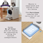 • SAFETY FIRST: Equipped with multiple safety sensors, the Purrclean ensures your furry friend is safe. The infrared sensor detects your pet and stops scooping if anything unexpected is detected.