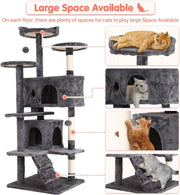 Ultimate 54-Inch Double Condo Cat Tree Tower with Scratching Post & Cozy Perch for Indoor Cats - Stylish Ashy Design