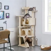 SmileMart 70" Multilevel Cat Tree Tower 2 Condos & 2 Fur Balls Posts, Beige