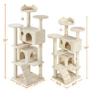 Ultimate 70" Double Condo Cat Tree with Scratching Posts - Creamy Comfort for Your Feline Friends!