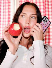 Keep the doctor at bay with our An Apple a Day iPhone case. Sweet apples, pretty flowers, hearts, and polka dots on a pink and white gingham background. Grab your limited edition case now and enjoy a fresh pick every day!