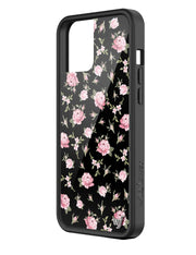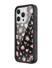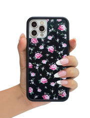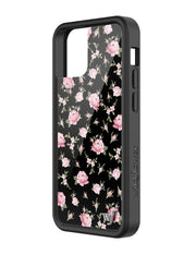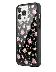 Meet our Black and Pink Floral iPhone case — a moody dainty floral reminiscent of Betsey Johnson’s prints in the 90s. Pink mini rose buds and dainty roses cover this all black case. For a matchy moment, complement your case with our Black and Pink Floral Airpods Max and Pro cases.