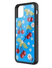In bloom: this limited edition Wildflower case. Playful summer-y cherries dance along our Cherry Blossom iPhone case. Dainty white florals fall along a pool blue background.