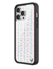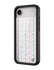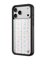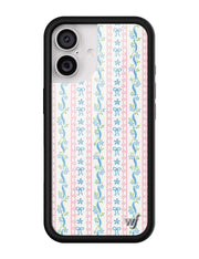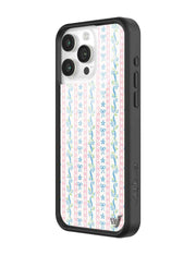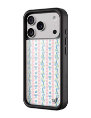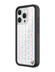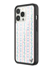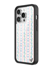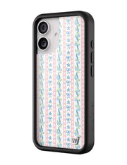 Step into sweet nostalgia with our Dollhouse iPhone case, wrapped in delicate details. This case features soft pink lace stripes, tiny blue bows, and dainty floral ribbons on a crisp white background, it feels like your favorite vintage wallpaper brought to life. It’s giving tea parties, ribbon curls, and that perfectly curated vanity vibe. Add a little doll core to your day — this one’s too cute to pass up.