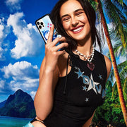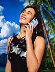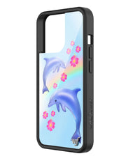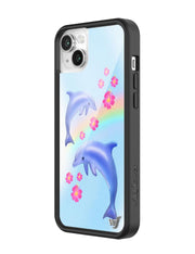 Straight out of a Hawaiian island scene on the beach, two playful dolphins are the center of our Dolphin Love iPhone case. Bright pink florals dance across a soft rainbow with our dolphins on this baby blue case. Shop this limited edition case fit for a Malibu barbie.
