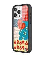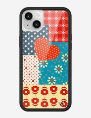 Our Flower Patch iPhone case is a patchwork mix of all your fav prints. It’s filled with cherry-check plaid with tiny hearts, sweet red ladybugs on polka dots, retro florals on bright blue, and bold red flowers on buttery yellow. A starry flag square adds a pop of Americana, all tied together with a heart right in the center. This limited edition case is cute, colorful, and full of personality!