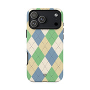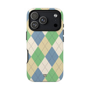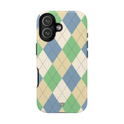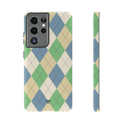 GREEN BLUE BEIGE ARGYLE | Tough Phone Case