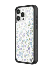 Mini, wispy florals cover our Lilac and Blue Floral iPhone case. Hidden lilac hearts dot across lilac shrubs, roses, and forget-me-not florals. This limited edition case is a classic, feminine floral for any season.