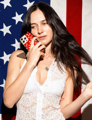 Romanticize the outdoors in a Lana kind of way with our National Anthem iPhone case. An ode to the Americana aesthetic, this case includes a true red with an adornment of stars across it.