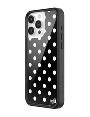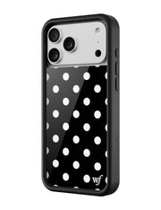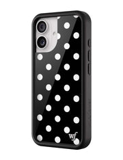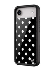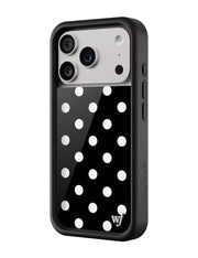 A timeless print, meet our Polka Dot iPhone case | Black and White. This case features a black background and a classic white polka dot moment in this limited edition case.