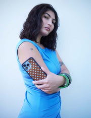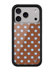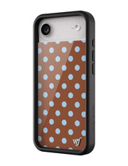 Retro with a pop of color. Our Polka Dot iPhone case | Brown and Blue pairs a rich brown background with bright blue polka dots for the perfect mix of bold and playful. A fun twist on a classic pattern you’ll never get tired of. Proof that polka dots will always be a vibe.