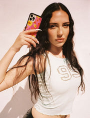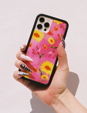 A total 90s moment, this case is giving Drew Barrymore in the ‘90s. Bright and painterly yellow sunflowers and purple tulips cover our limited edition Sunflower Spring Floral iPhone case. You’ll be in the mood for spring in this bright pink, limited edition case.