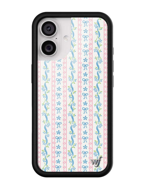 View full detailsStep into sweet nostalgia with our Dollhouse iPhone case, wrapped in delicate details. This case features soft pink lace stripes, tiny blue bows, a...