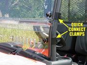 • QUICK CONNECT CLAMPS-Our top-of-the-line clamps are a powder-coated 2-piece steel clamp.  Once installed, the windshield sections can be removed or re-installed by simply removing the knob bolt.  Additional automotive trim is attached along the sides of the windshield.