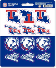 Louisiana Tech University Bulldogs 12-Piece Mini Decal Sticker Set, 5x6 Inch Sheet, Gift for football fans for any hard surfaces around home, automotive, personal items