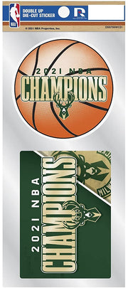 Milwaukee Bucks 2021 NBA Champions 2-Piece Double Up Die Cut Sticker Decal Sheet, 4x8 Inch