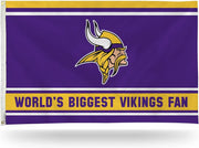 Minnesota Vikings 3x5 Feet Flag Banner, World's Biggest Fan, Metal Grommets, Single Sided, Indoor or Outdoor Use