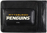Pittsburgh Penguins Black Leather Wallet, Front Pocket Magnetic Money Clip, Printed Logo