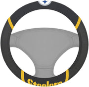 Pittsburgh Steelers Steering Wheel Cover Premium Embroidered Black 15 Inch