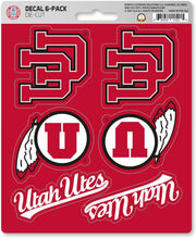 University of Utah Utes 6-Piece Decal Sticker Set, 5x6 Inch Sheet, Gift for football fans for any hard surfaces around home, automotive, personal items