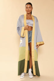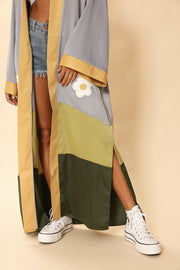 - Maxi kimono with color block flower field motif