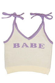 Miss Sparkling tie strap sweater tank. Features side slits at hem and tie straps at shoulders.