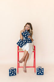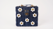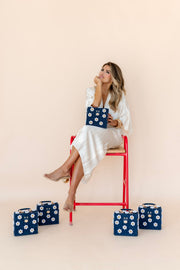 Navy Blue Purse + White Daisy with Yellow Rhinestone Center
