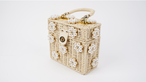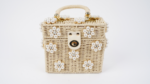 View full detailsCream Purse + Light Pink Daisy with Clear Rhinestone Center Top handle with turn lock closure | Ships with gold shoulder chain | Dims: 6.29"x 3.34...