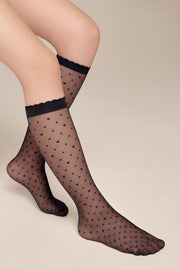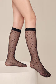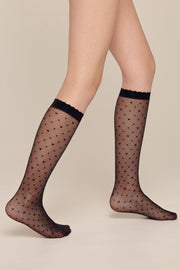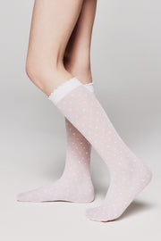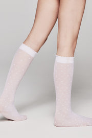 MOLLY thin knee-high socks with a geometric heart pattern – an excellent gift for your little fashionista! These knee-high socks will look great both in everyday and in a dressy outfit for a girl.
