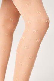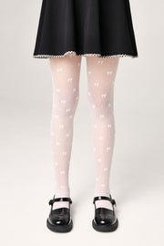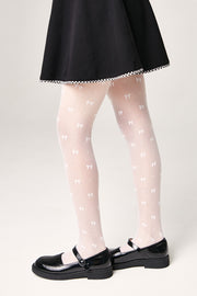 Elegant children's tights AMELIE with a delicate bow and dot pattern. Soft and elastic, ideal for everyday and festive outfits. Comfortable fit with flat seams and reinforced toe.