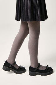 Dense melange tights MELANGE microfiber are soft and elastic, stretch well and provide warmth. A comfortable wide waistband securely holds the tights in place.