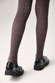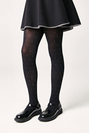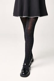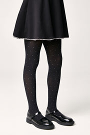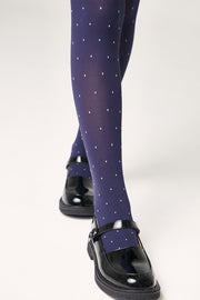 NADIN fantasy tights for girls with a dotted pattern. Made of microfiber and LYCRA, they are soft, stretchy, and feature a flat comfort seam and reinforced toe. Perfect for stylish everyday or festive looks.