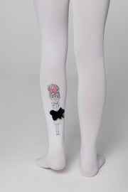 Dense elastic tights PRETTY with a cute print and decorative detail — for girls who love stylish accents.