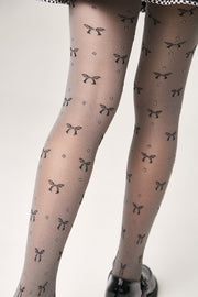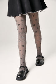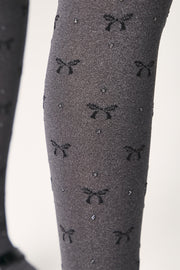 Melange tights SAMIRA with bow and glitter dot patterns add a stylish touch to a girl’s outfit.