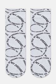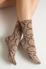 Dense socks FANTASY with a knitted “My dreams” design will make a striking addition to your everyday outfits and provide comfort in cool weather.