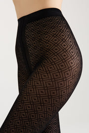 Opaque elastic women’s tights ALBA with a geometric diamond pattern along the entire length. The tights feature a flat seam and a cotton gusset for maximum comfort.