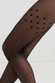 EVENING tights are minimalist yet seductive, thanks to the dotted and triangular pattern that imitates stockings. A perfect finishing touch for casual or evening outfits.