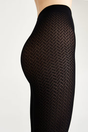 Tights with a sophisticated geometric pattern GRAPHIC are perfect for both simple everyday looks and evening outings. The model draws attention to the beauty of the legs and looks very elegant.