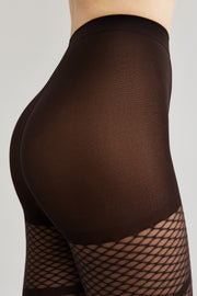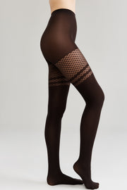 Dense fantasy tights IMPULSE are a perfect choice for stylish and bold girls! The over-the-knee effect and large mesh insert on the upper leg add a unique touch to your look. A soft and dense waistband stays invisible even under tight-fitting clothing, while flat seams and a cotton gusset ensure all-day comfort and ease.