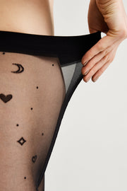 MOON patterned tights are a stylish addition to both casual and evening looks. These lightweight, elastic tights perfectly hug the figure, keeping you comfortable throughout the day.