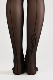 ROSE tights with a back seam imitation and elegant rose detail add a refined, feminine touch to your look. Perfect for both everyday wear and special occasions.