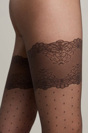 SEDUCTION tights with mock stocking effect and polka dot pattern add a seductive accent and enhance the beauty of your legs. A guaranteed way to feel confident and attract attention.