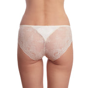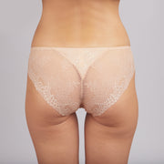 Slip panties made from elastic fabric, elastic jacquard fabric, and elastic lace. Medium waistline. The lace on the back piece is untrimmed, without any edging. A distinctive feature of the Milavitsa 260540 panties: they are seamless on the sides, and the back part of the garment does not have elastic bands - they do not compress anywhere, and they look aesthetically pleasing on the body.