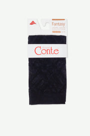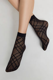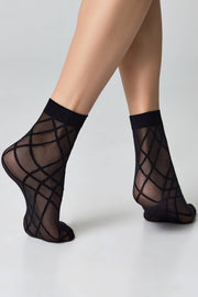 Thin FANTASY socks with a geometric lacing imitation pattern will make a striking addition to your everyday outfits.